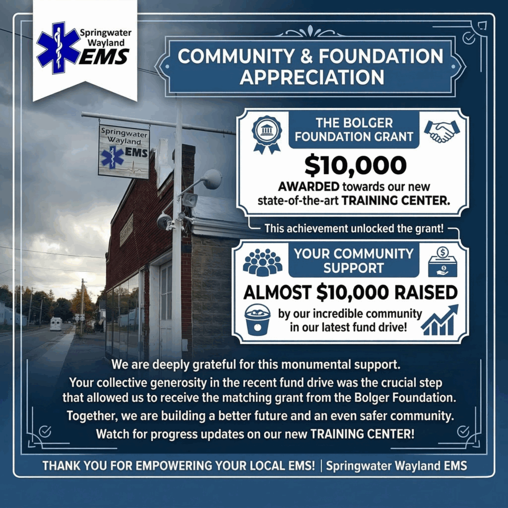The dedicated training room will be in the side room of the historic Bennett Bros building. That room is about 2,000 square feet and our vision is to host more EMT classes as well as other regional EMS training opportunities. The goal is to have a “high tech” center that can handle teleconference training opportunities as well as having good A/V equipment to maximize in-person education.